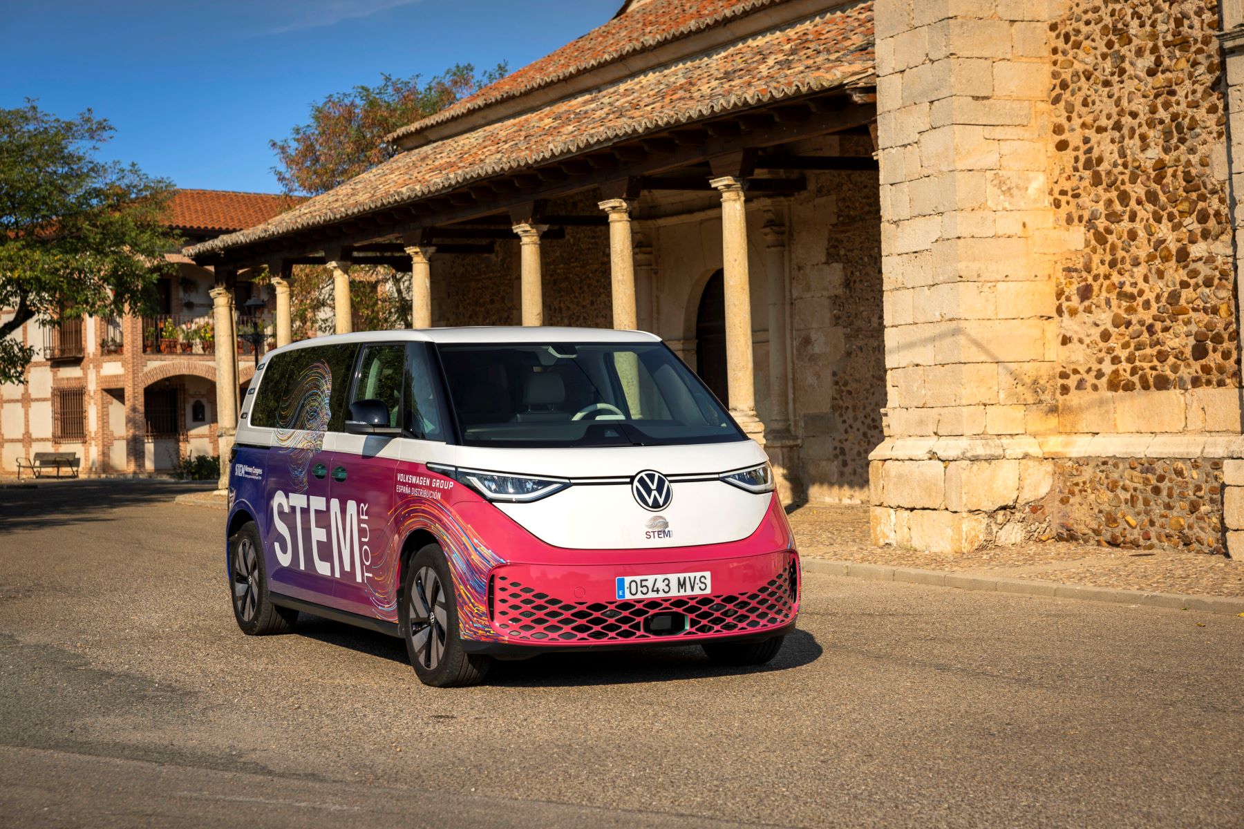 Este año, un Volkswagen ID.Buzz cedido por Volkswagen Vehículos Comerciales, ha vuelto a salir a la carretera para emprender una ruta que le llevará a 22 centros educativos en pueblos y ciudades de cinco comunidades autónomas, donde llevarán a cabo charlas, talleres y experimentos en colegios e institutos.